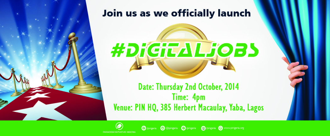#DigitalJobs, a joint social empowerment project of Paradigm Initiative Nigeria (PIN) and the Rockefeller Foundation, will launch at PIN’s new headquarters on October 2, 2014. The project, which is part of Rockefeller’s efforts to impact 1 million lives in 6 African countries, will involve a campaign to introduce the benefits of online jobs and training opportunity for youth who sign up through PIN.
