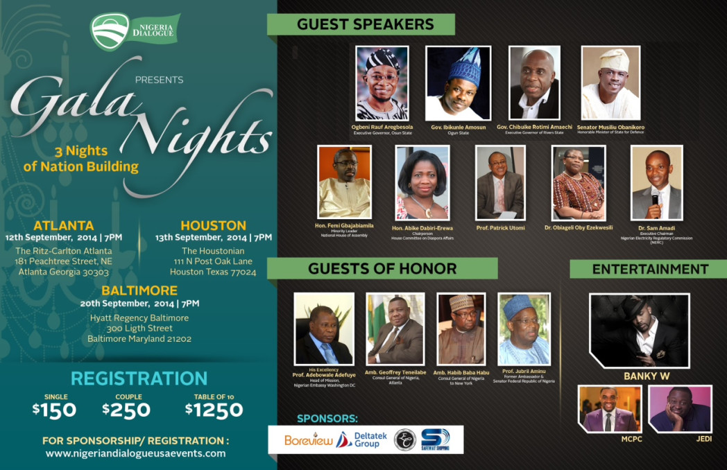 In continuation of her “Let us build” campaign, the leadership of Nigeria Dialogue has released the time table for a series of Gala Nights to be hosted in North America in September, 2014. The events which will take place in the four cities across North America – Atlanta, Houston, Maryland and Toronto is part of the global campaign led by the organisation aimed at promoting good governance in Nigeria by actively engaging Nigerian citizens about the state of the country and framing the key issues necessary for building the nation.