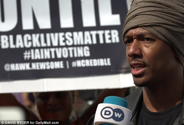 Nick Cannon joined Black Lives Matters protesters outside the Republican National Convention which started in Cleveland, Ohio, on Monday and attacked both the Democratic and the Republican parties. Nick stood in front of banners and posters calling for justice and an end to shootings of black men by police officers.