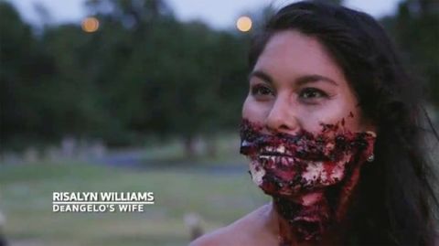 It looks like nuptials with elaborate themes, particularly ones that are on the grisly side, might be the rising new wedding trend. First, there was that Texas couple that had a murder-themed engagement shoot in June. And on July 23, NFL player DeAngelo Williams married his bride, Risalyn, in a Walking Dead themed ceremony at the Peabody in Memphis, Tennessee.