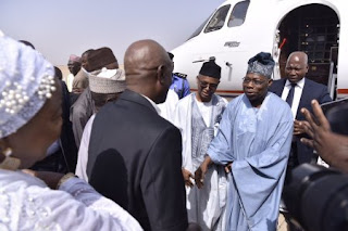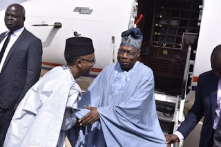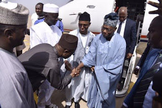 Former President of Nigeria, Olusegun Obasanjo has just arrived the Kaduna International Airport, on a one-day working visit to the state. He was received by the Kaduna State Governor Nasir El-Rufai.