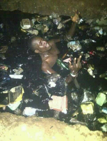 According to multiple online reports, this young man in a bid to celebrate jumped into and swam in a gutter filled with dirty water after Barcelona progressed into the quarter final of the Champions league.