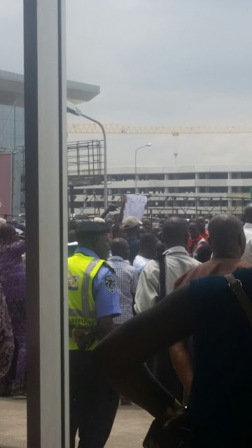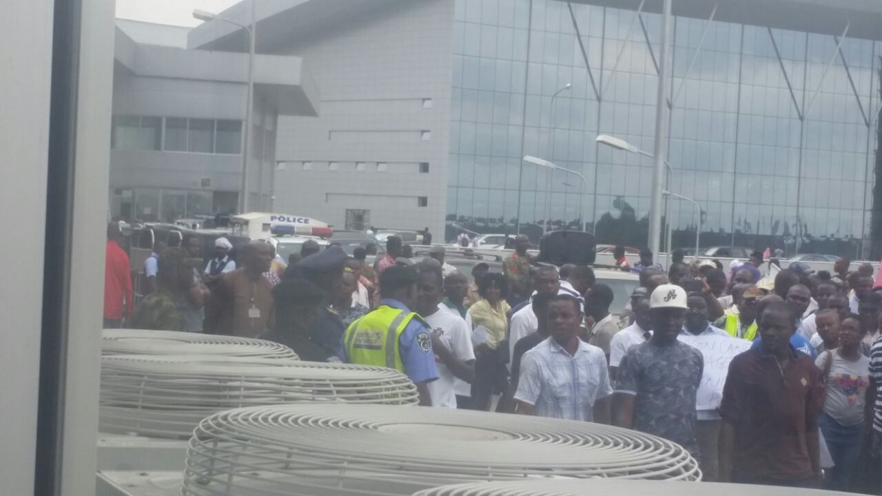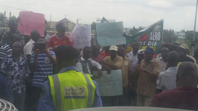 The News Agency of Nigeria reports that the protest was organised by the Air Transport Services Senior Staff Association of Nigeria (ATSSSAN) and National Union of Air Transport Employees (NUATE).